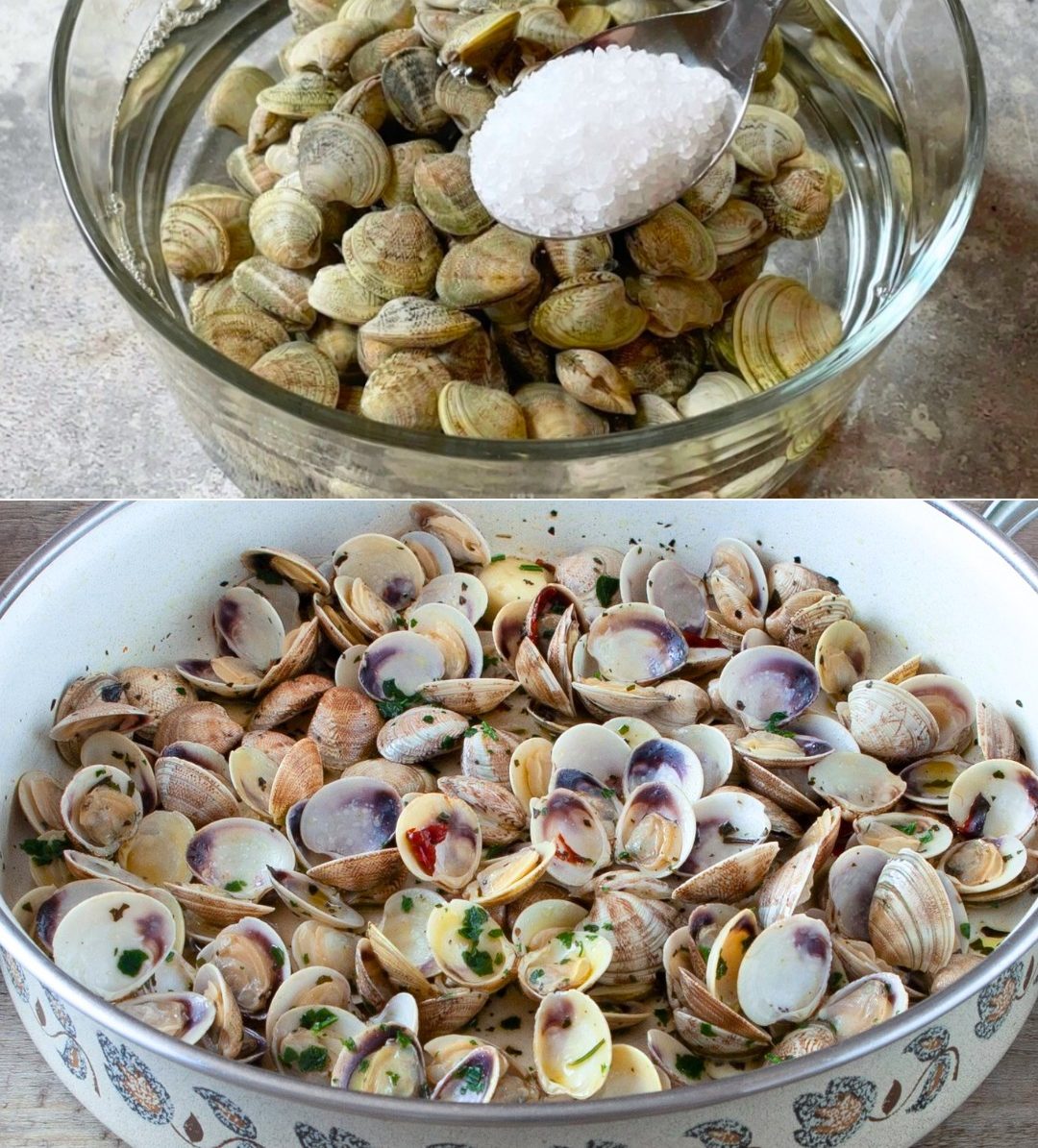 As amêijoas vivem em água salgada e, antes de as cozinhar, é necessário “purgá-las” para eliminar qualquer areia que possa permanecer no seu interior.