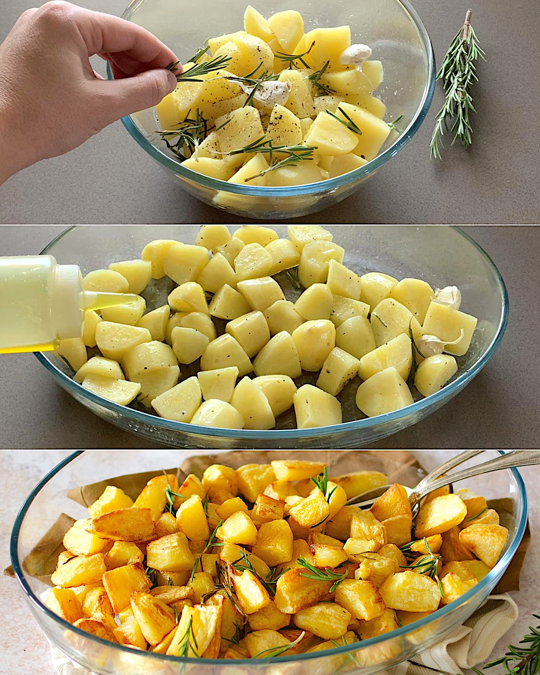 As batatas assadas são o acompanhamento perfeito: crocantes por fora e macias por dentro. Simples de preparar, podem ser cortados em fatias, cubos ou rodelas, temperados com azeite, alho, sal e alecrim. Perfeitos para acompanhar carne ou peixe, são também excelentes com legumes.
