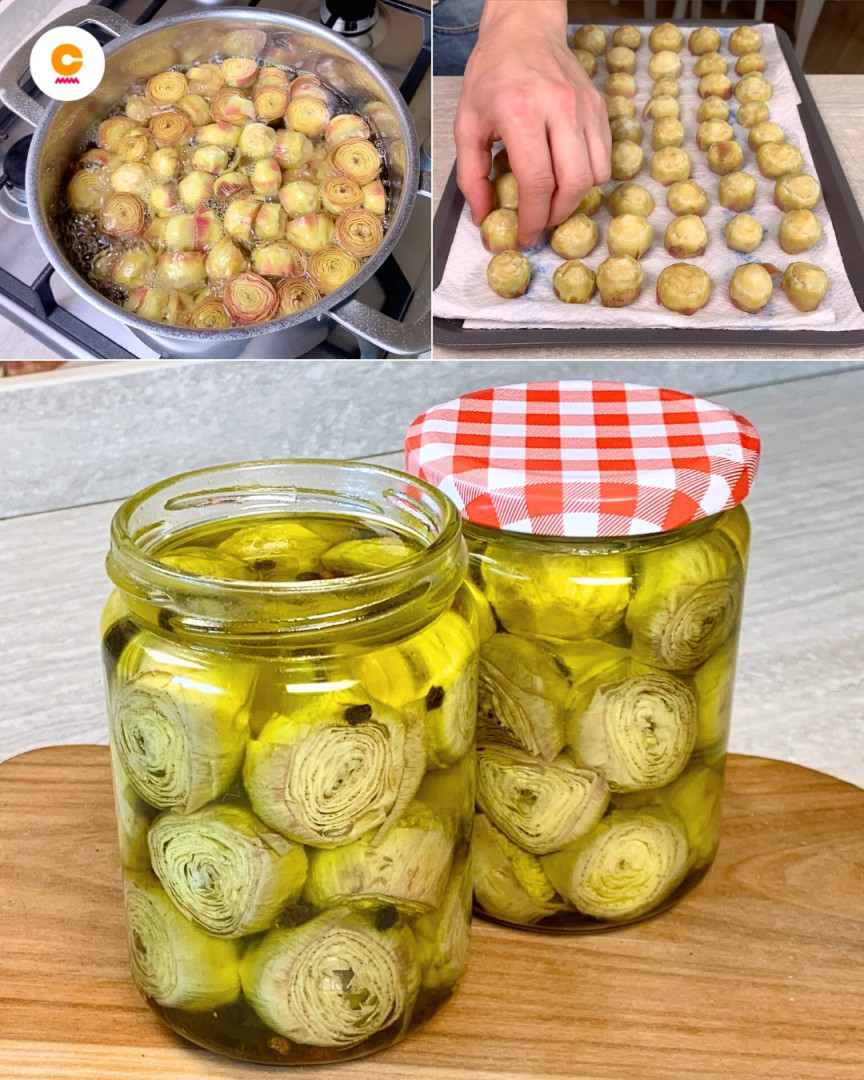Escolha alcachofras frescas: opte por alcachofras frescas e firmes, com folhas bem fechadas. As variedades espinhosas, como as alcachofras romanas, são ideais para conserva.