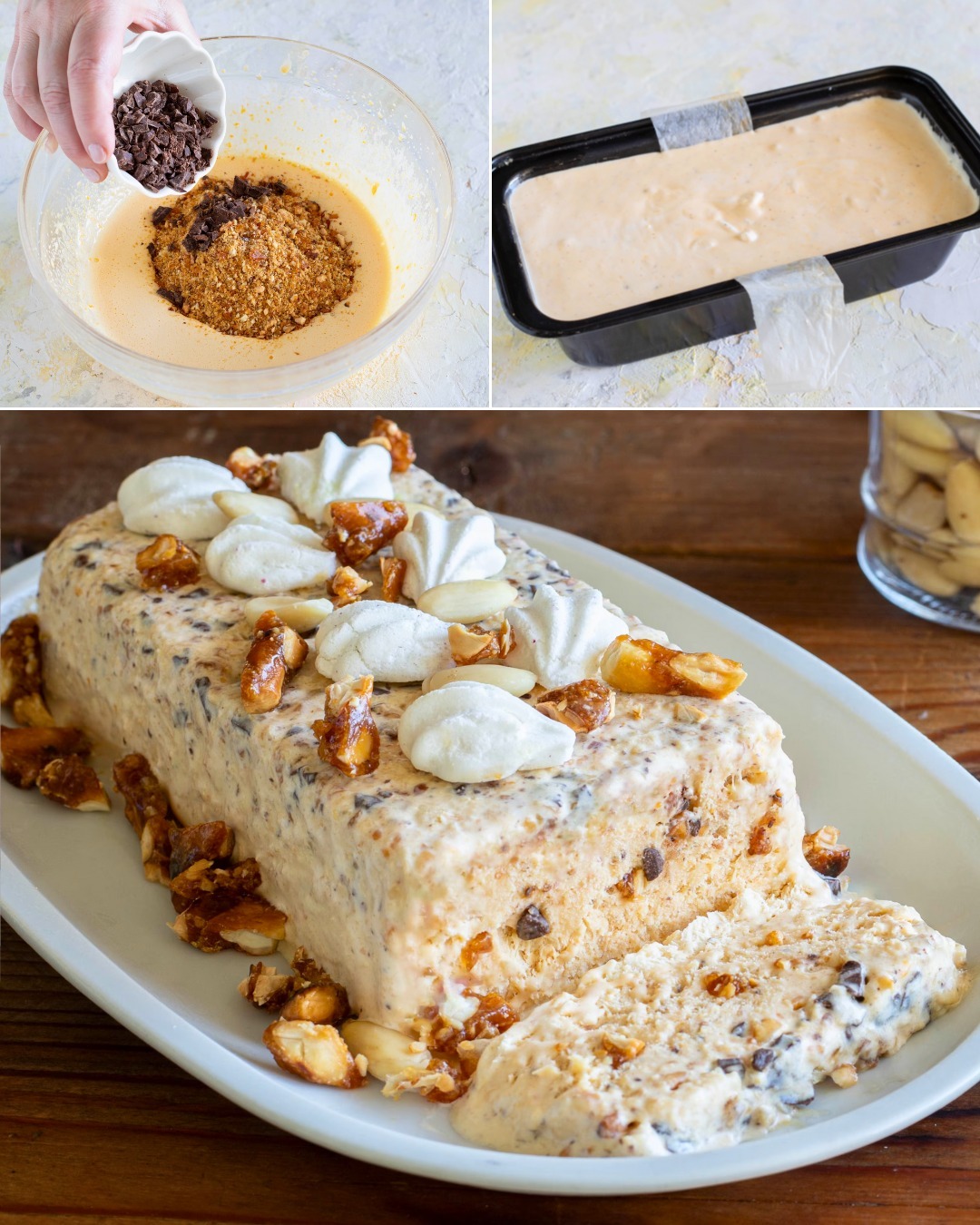 Il mezzo freddo tutte le mandorle è un dessert delizioso e raffinato, perfetto per la tenuta. Realizzato con croccante tutto mandorla, uova, zucchero, panna montata e cioccolato fuso, questo dolce dolce è ideale da servire alla fine di una cena con le specialità ospiti, ed è amato da grandi e piccini.