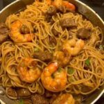 • Massa com Camarão e Bife Teriyaki